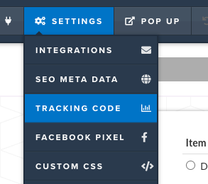 Or you can add the base pixel to JUST your order page by clicking SETTINGS --> TRACKING CODE --> and selecting HEADER CODE