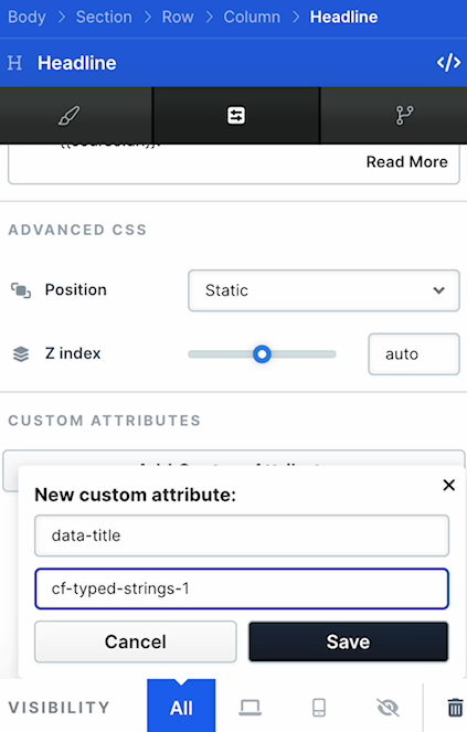 Add a custom attribute named "data-title" with the value "CF-typed-headline-1."